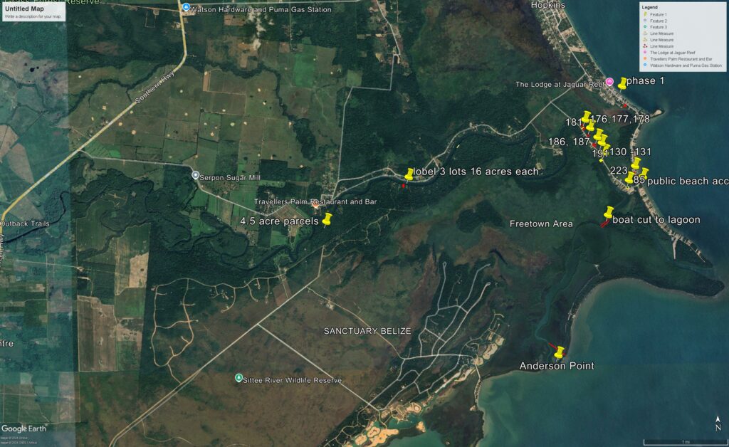Nestled just across from the Sittee River Marina, these lots offer unparalleled access to the river, with an easy drive to the charming village of Hopkins—just 5 minutes away. Keep your vehicle at the marina and enjoy the convenience of quick getaways to this vibrant community known for its rich culture and stunning beaches.
